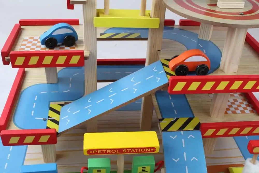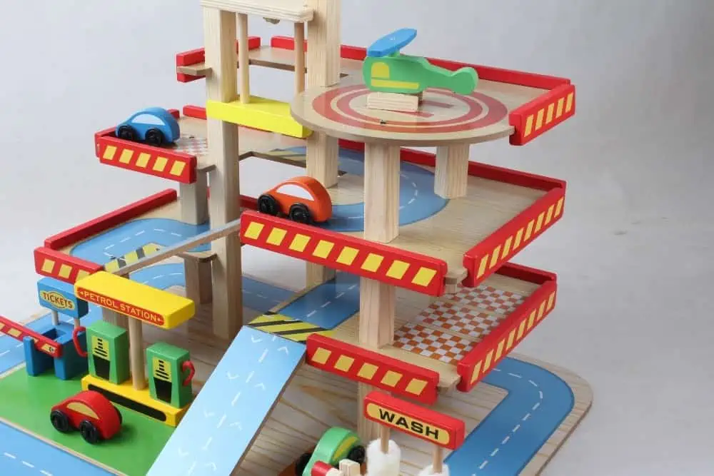 Découvrez un garage voiture jouet en bois idéal pour les enfants.