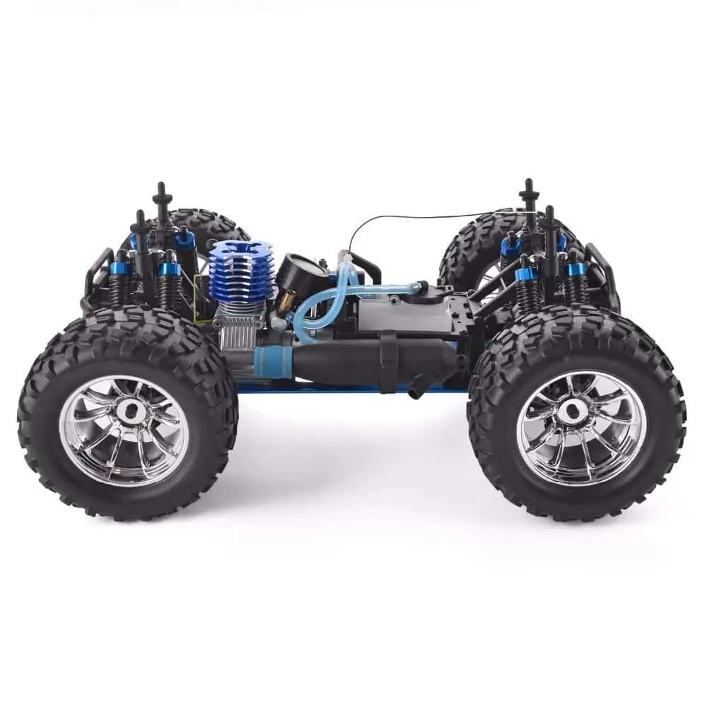 Découvrez ce monster truck télécommandé thermique, conçu pour offrir puissance, vitesse et robustesse. Fonctionnant à l’essence, il est idéal pour les passionnés de modélisme automobile qui recherchent des sensations fortes et des performances élevées. Ce véhicule tout-terrain affronte sans difficulté le sable, la terre, la pluie, les cailloux et les obstacles, pour des courses palpitantes et un pilotage impressionnant.