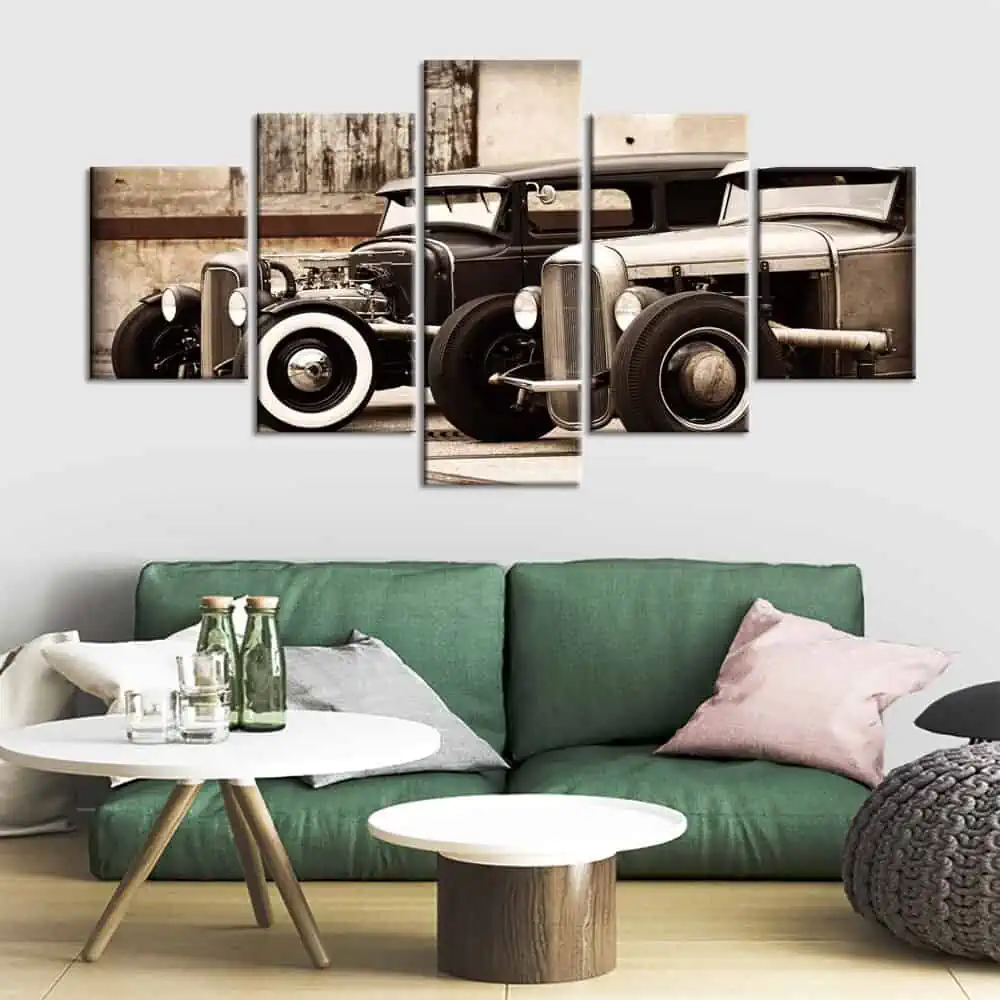 Découvrez ce magnifique tableau représentant une voiture américaine ancienne. L’impression de haute qualité sur toile « Canvas » confère à cette œuvre un aspect réaliste et authentique, idéal pour les amateurs de vintage et de décoration rétro.
