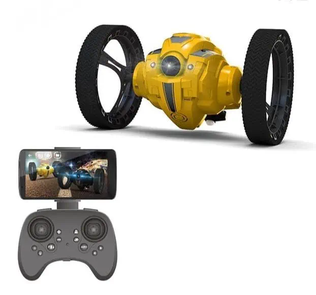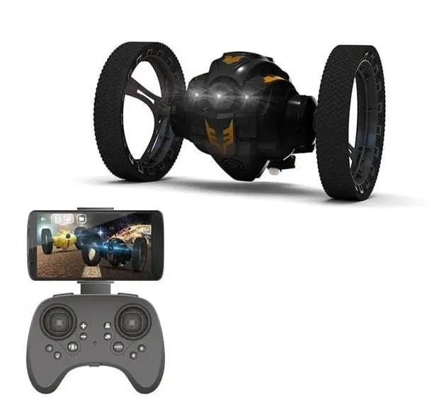 - 3 modes de jeu : saut jusqu’à 70 cm, caméra intégrée pour filmer en temps réel, rotation à 360°
